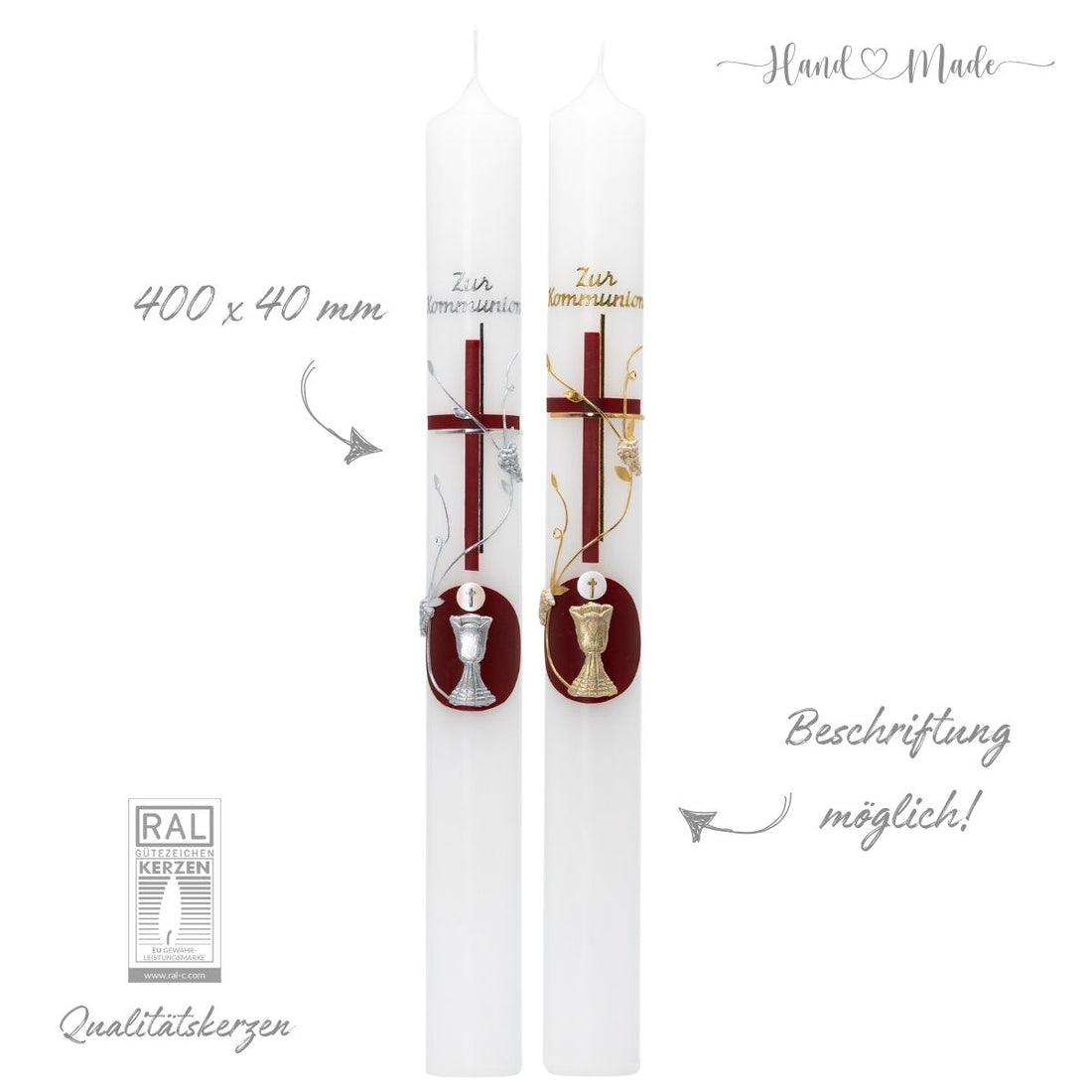 Kommunionkerze-Konfirmationskerze | Rot-Silber - 40x4