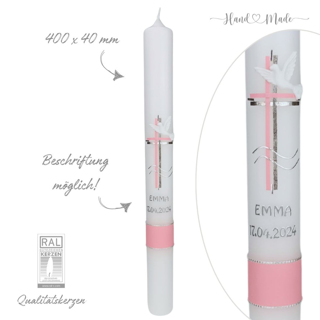 Kommunionkerze für Mädchen | Rosa-Silber - 40x4