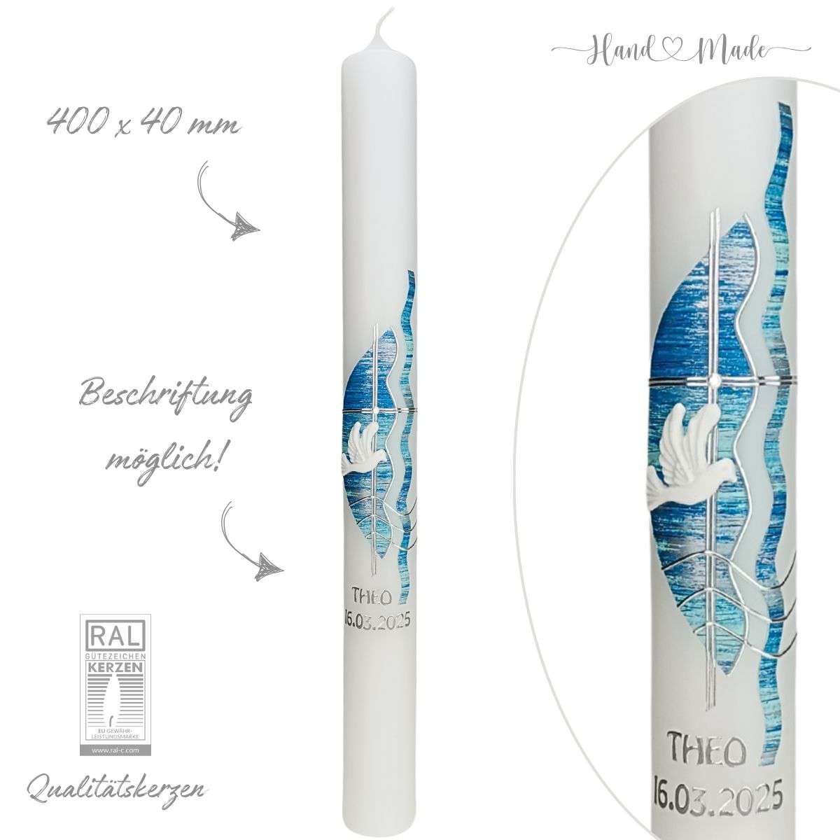 Kommunionskerze - Taufkerze Wellenmuster - Junge - Blaue Töne
