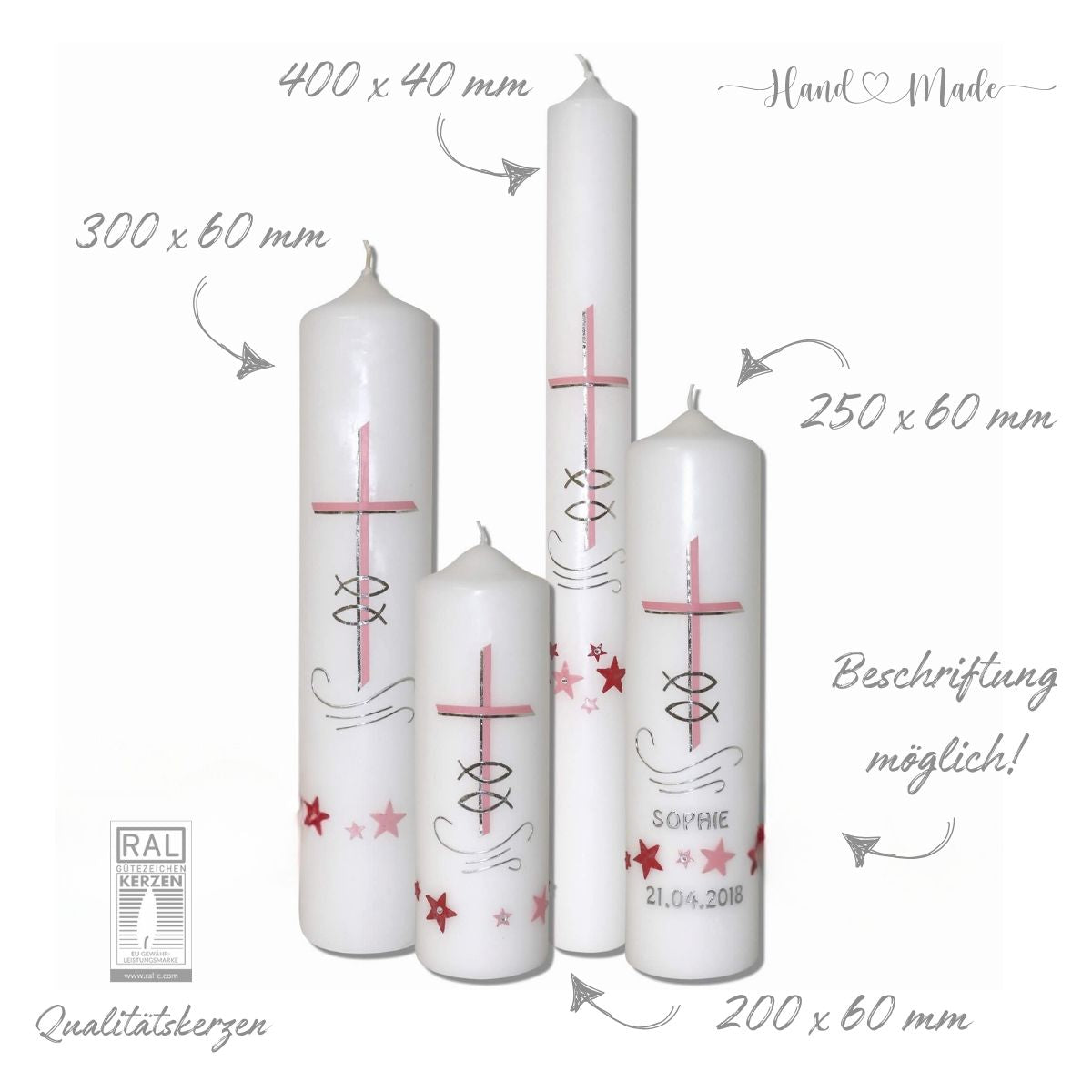 - Kerzenmotive/Kerzendesign: Kreuz, Sterne, Fische